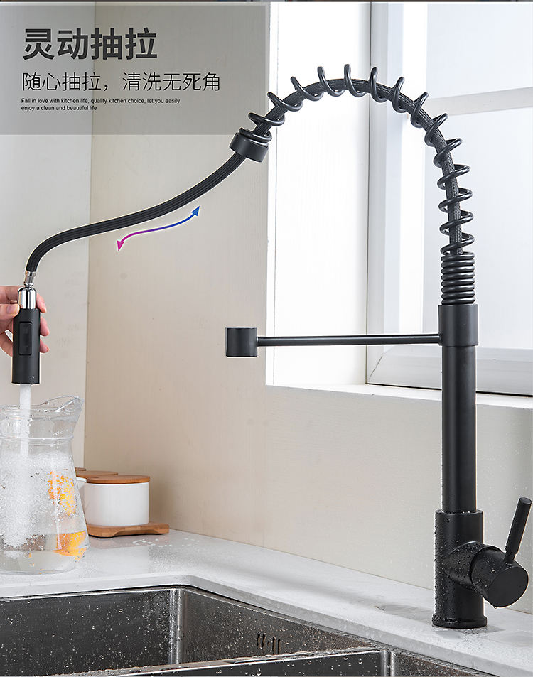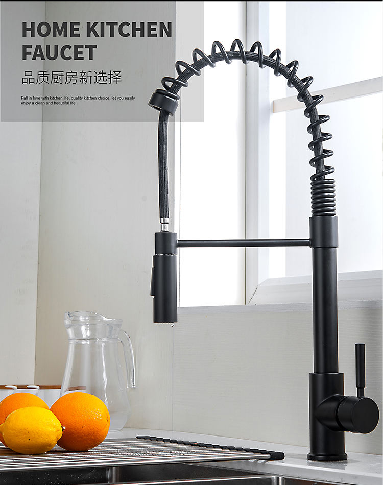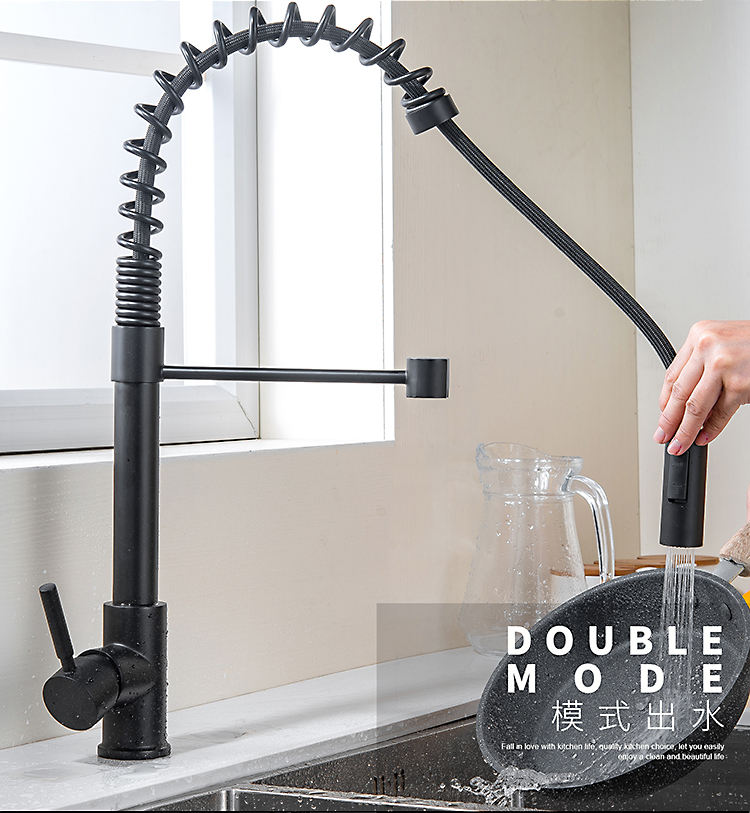 Home / Products / Kitchen Faucet / Matte Black Luxury Fashion Bifunctional Sink Contemporary Kitchen Mixers Pull Out Single Handle