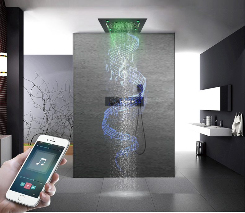 Smart Music Multiple Function Shower Head Rainfall Mistfall Waterfall Water Curtain Remote Control LED Bathroom Shower